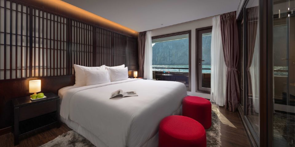 • 11:30 : Arrive at the Scarlet Pearl check-in area at Halong International Cruise Port – where we will complete the check-in process and other procedures.Direct to Scarlet Pearl Cruise. Welcome aboard! Enjoy a welcome drink during the cruise briefing, including safety instructions, before check-in to your cabin.