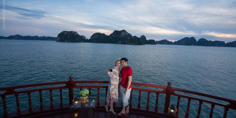 19.30: Enjoy our a la carte course menu for dinner on board as you experience the charm of Bai Tu Long Bay at night.