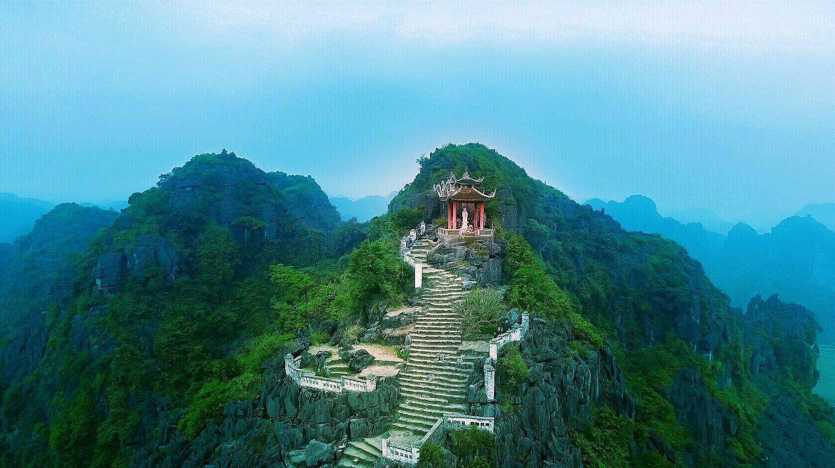 • 15h15: Get back to Limousine Bus then leave for Mua Cave (Dancing Cave). Walk up almost 500 steps, you can reach the top of Lying Dragon Mountain & have an amazing panoramic view of Tam Coc from here