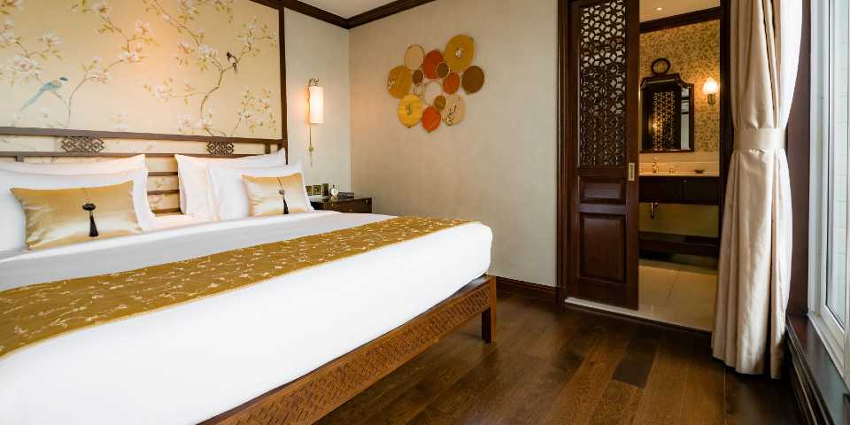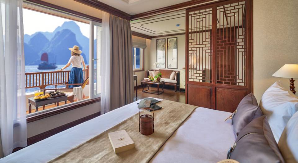 The gracious Ginger will be Heritage Line’s new vessel cruising the Lan Ha Bay, which is a tranquil part of the famous Halong Bay in Vietnam. Ginger hosts only 12 large suites, all naturally light-flooded and with well-sized balcony. There will be two Regent Suites in the highest room category. Additional four Signature Suites and six Junior Suites complete the suite only vessel. Ginger expresses her elegance with warm timber floors, marble bathrooms and distinguished design themes that interlace the long-lasting traditions of Northern Vietnam paired with contemporary accents. Email:gingercruise@impresstravel.com & call to Mr. Alex Impress Travel, Lan Ha Bay Tours, Lan Ha Bay Cruises & Ginger Cruise Manager at his cell-phone (+84) 9123 79 189 ​