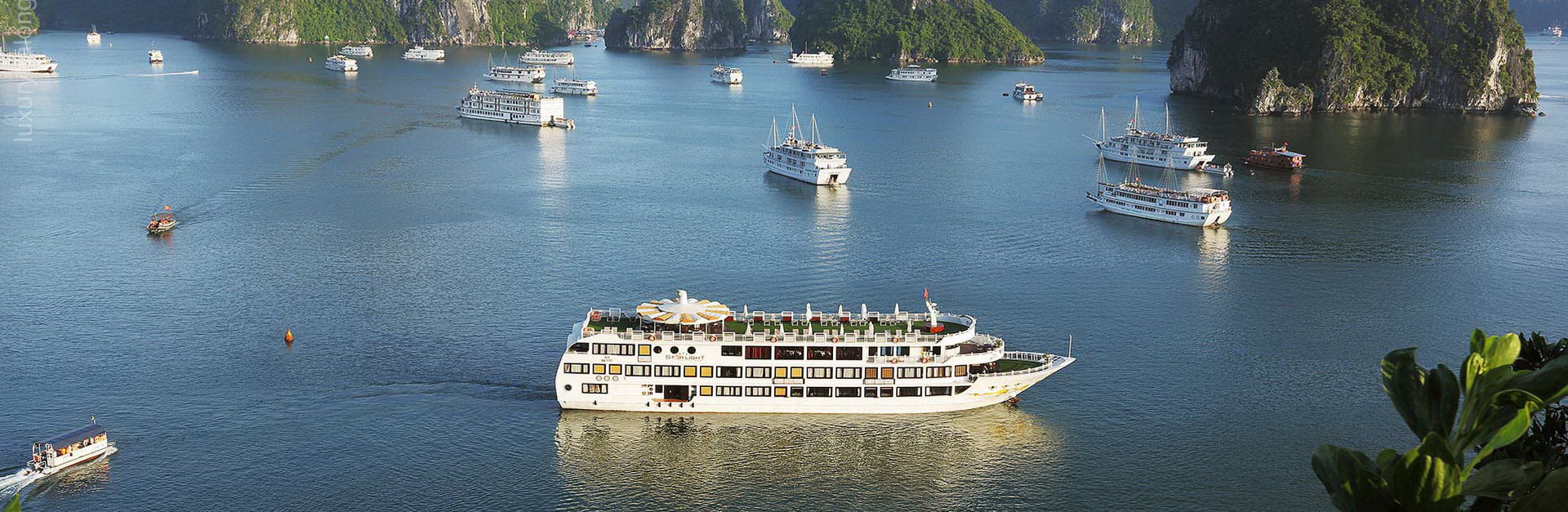 Welcome to the luxury 5-star Dragon Legend Cruise in Halong Bay& Bai Tu Long Bay. The 2 Dragon Legend ships are the newest members of the Indochina Junk fleet, proudly marking the highest standards of construction. Each Dragon Legend boat features 24 luxury cabins, 4 decks with both inside and outside restaurants, a spa, bar, sundeck area and other entertainment options. Each spacious cabin is a work of art with Vietnamese traditional hand crafted décor and modern facilities, a private bathroom includes a bathtub and big sea view windows. Dragon Legend cruise offers dramatic public spaces, impressive open air dining and a bar that definitely makes for a relaxing trip in the bay. The mission of Indochina Junk Company and the Dragon Legend cruise is to offer trips to Bai Tu Long Bay in the less touristed area so the itinerary has been well researched to lead you far off the beaten track. All the design features, itinerary and activities on board are customer oriented. The goal of the Dragon Legend cruise is to bring you another truly exceptional cruise experience of the greater Halong Bay area. Cruising on Halong Bay, passing thousands of evocatively shaped islets can be a magical experience but most the best-known visiting sites in the center of Halong bay are often overcrowded. In a harder-to-reach-location, nearby Bai Tu Long bay boasts the same stunning scenery but less crowded. Dragon Legend Cruise offers off-the-beaten-track cruise experience to Bai Tu Long Bay, a more relaxing trip sailing around the less visited areas of the extraordinary bay. Halong Bay is best to discover on an overnight cruise, by which you can listen to the legend of Dragon, experience the daily lives of the tranquil floating villages and see the marvelous nature in the emerald waters through various activities from swimming, kayaking around rocky mountain to visiting magical cave, having a BBQ on a wild beach or exploring floating villages… and tasting the best of local seafood and Vietnamese traditional dishes. From the moment you step onboard, check in your cabin, experience outdoor activities or relax on the sundeck, you are served by our attentive staffs treating you as the close friends visiting home, we are always there with a smile and helping hand. Your experience while cruising Halong bay is all of what we care because you deserve it and Halong bay will be a lifetime experience of your memories! Here we would like to suggest you with the outstanding itineraries and the package 2 days / 1 night and 3 days / 2 nights tours, and plus with package tours in the north Vietnam, lovely stay on Dragon Legend cruise to explore Halong & Bai Tu Long Bay.