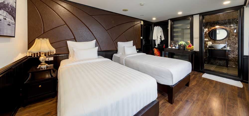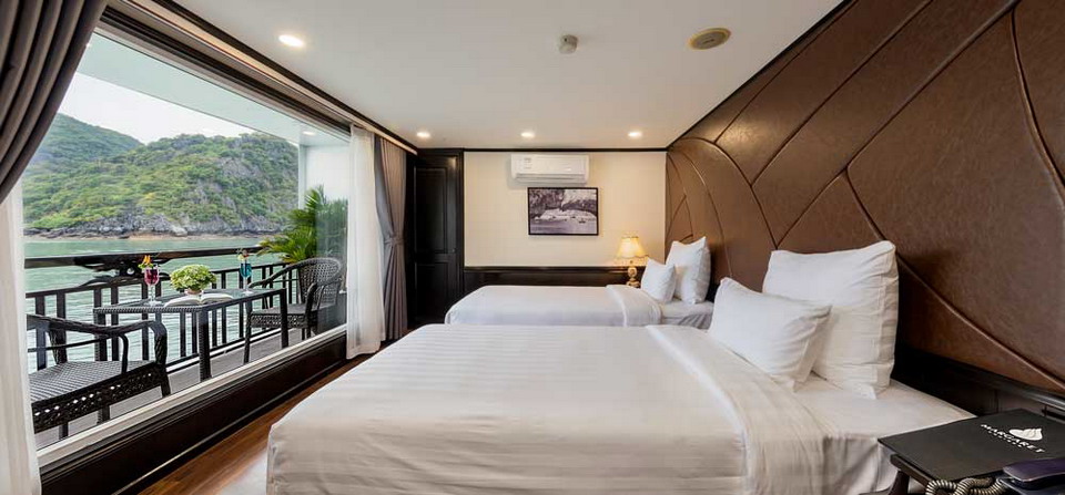 Margaret cruises: Family Connecting Room with Ocean View. Warm and spacious. Located on the 2nd deck of Halong bay cruises – Margaret, the Family Connecting Room with Ocean View is two cabins sharing a connecting door. This type of cabin is the best option for families with more than one child or a group of four. Whether you are preparing for a dynamic day for exploration, primping for a romantic dinner or settle down for a quiet evening in, you will be enveloped by this inviting suite’s warm touches. Email: margaretcruise@impresstravel.com or contact the hotline (Whatsapp, Zalo, Viber, Skype) at +84.912 379 189 – Mr. Alex.