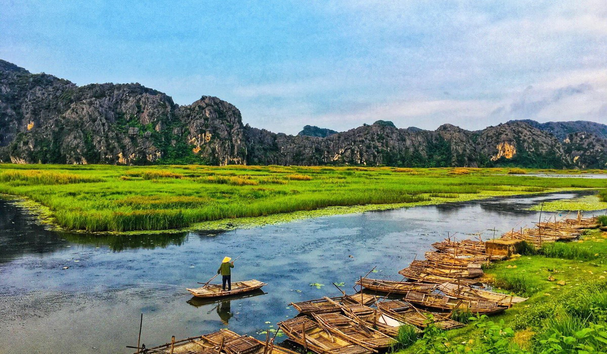 Take a peaceful bamboo boat ride through Van Long, often called the “hidden gem of Ninh Binh.” Glide across calm waters, admire limestone mountains, and spot wildlife in this tranquil nature reserve.