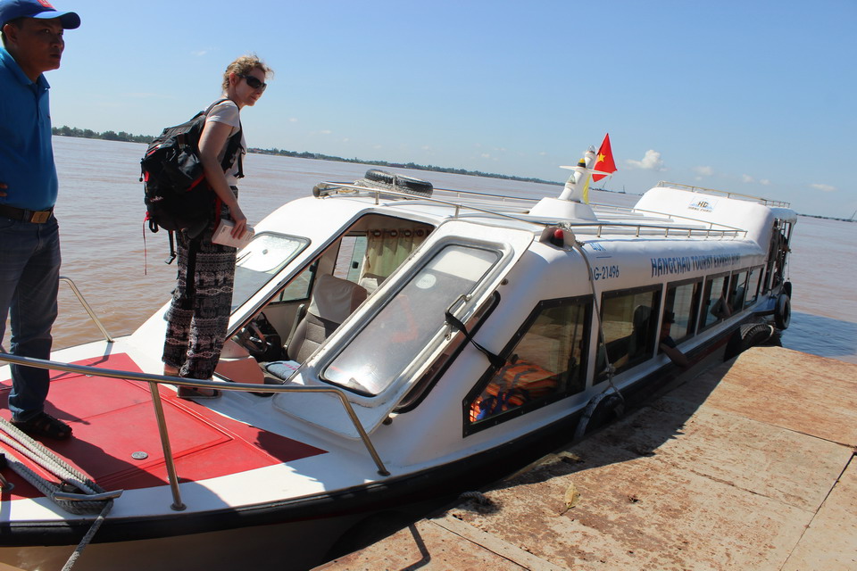 Blue Cruiser boat picks up passengers at 13:30 PM. Boat leaves Phnom Penh International Port (Sisowath Street) on Tone Le Sap River and goes to Khoorm Som Nor & Vinh Xuong border gate. Passengers shall make complete entry procedures at Vinh Xuong (visa must be obtained beforehand, processing at Embassy of Vietnam in Phnom Penh takes 2 full days) then go on Hau River to Chau Doc.