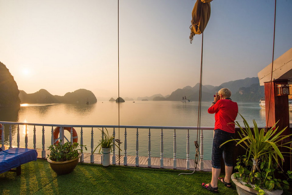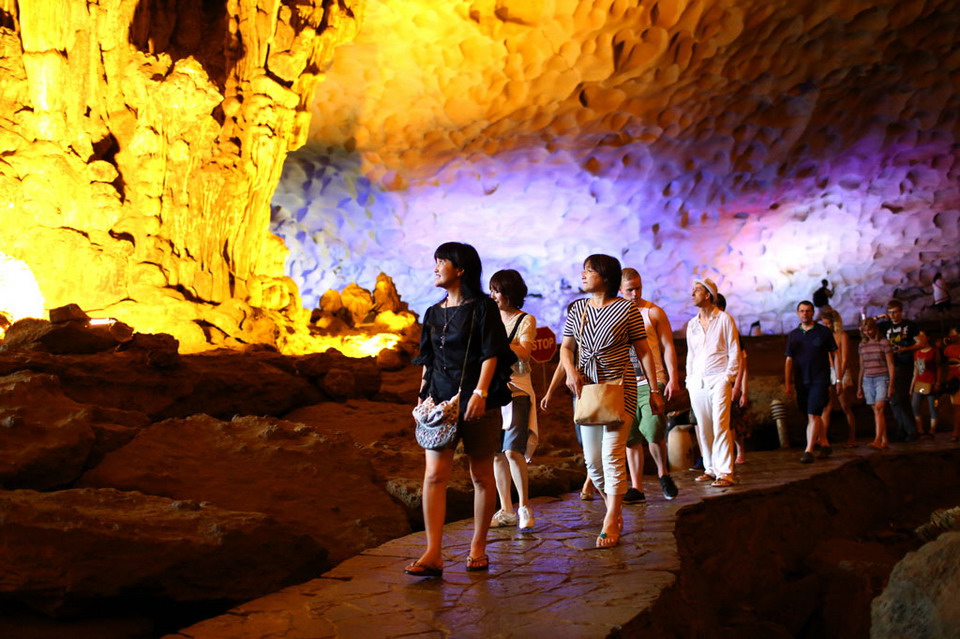 • 07:45 Tender boat will pick us up to visit the Surprising (Sung Sot) Cave, discovered in 1901, and now being a must-to-see tourist attraction for its extensive space. After the rock formation and millions years of water erosion, the cave is now featured by hundreds of marvelous stalactites, stalagmites and grandeur stone chambers which are incomparable with any cave in Gulf of Tonkin.(Shoes, sandals and convenient clothes are recommended to visit the Cave).