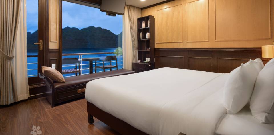 • 21h30: Enjoy the landscape of the bay at night up on the top deck. Relax whilst enjoying drinks from the bar. Try your hand at night squid fishing, watching a movie in the restaurant. Overnight on board at Tra Bau area.